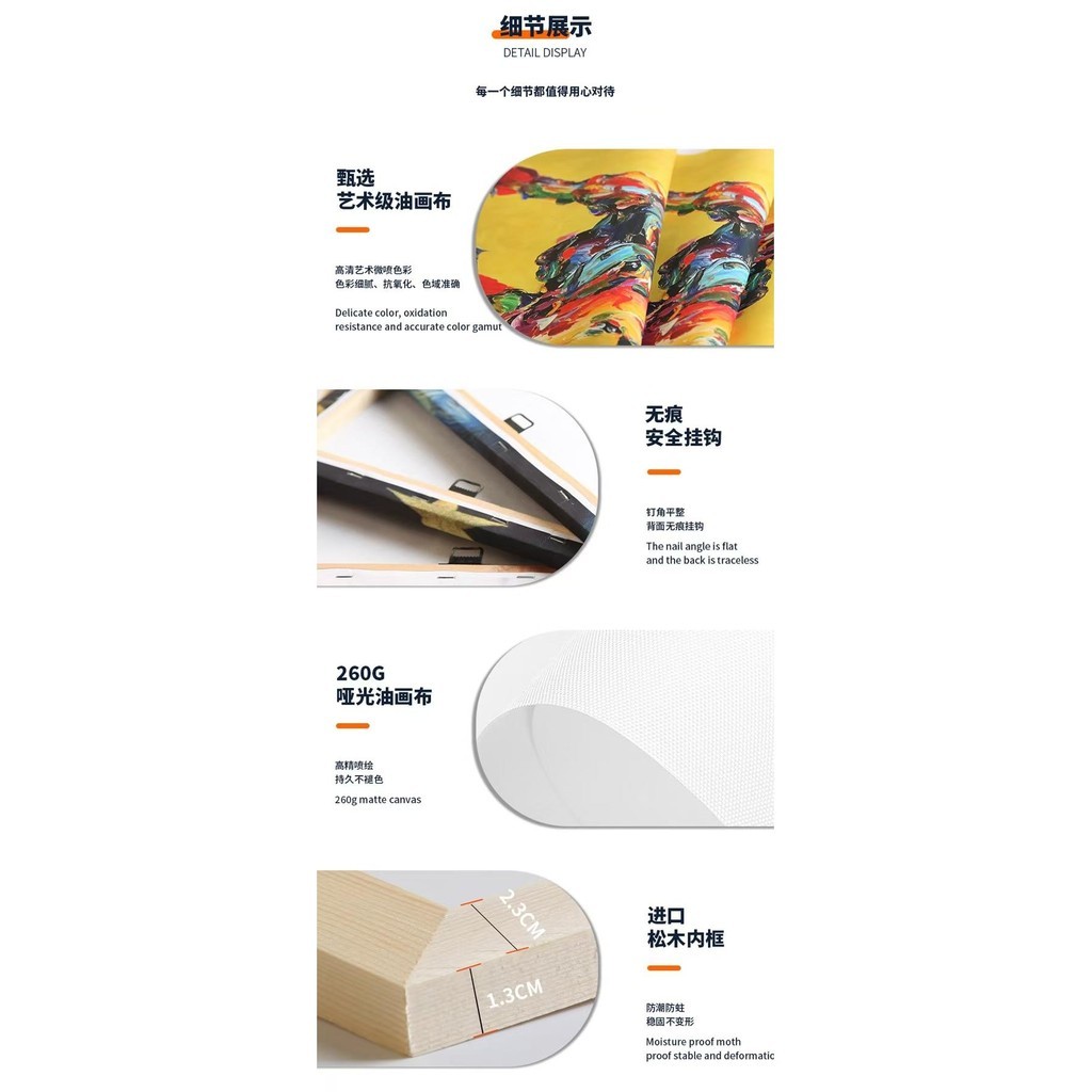 2. Material: Canvas. The posters are of high-definition quality, but the screen display may have some slight deviation from reality. We use high-definition images for printing, with posters featuring rich colors that can be stored for a long time. Poster dyes are environmentally friendly, energy-saving, and pollution-free.
